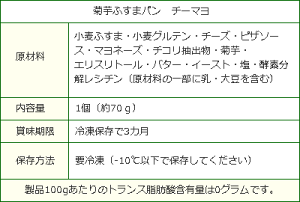 商品名 菊芋ふすまパン チーマヨ 商品説明 菊芋入りで糖質制限を強力サポート 腸内環境・腸活ダイエットでお腹の中から健康に 内容量 5個 (1個約70g) 原材料名 菊芋ふすまパン チーマヨ:小麦ふすま・小麦グルテン・チーズ・ピザソース・マヨネーズ・チコリ抽出物・菊芋・エリスリトール・バター・イースト・塩・酵素分解レチシン(原材料の一部に小麦・乳・卵・大豆) 賞味期限 冷凍保存で3カ月 保存方法 要冷凍(−10℃以下で保存してください) お召し上がり方 常温自然解凍(室温15度で約1時間目安) 冷蔵庫解凍(約半日〜一晩) 解凍したのち、オーブントースターで軽く焼いて食べるのもお勧めです 栄養成分表示 【菊芋ふすまパン】(チーマヨ) エネルギー 129Kcal たんぱく質 11.1g 脂質 5.1g 糖質 6.1g 食物繊維 8.8g ナトリウム 227mg (1個あたり約70g) 広告文責 有限会社グリーンハーベストジャパン TEL 079-433-8551 製造 有限会社グリーンハーベストジャパン 日本製 糖質制限食品 食物繊維食品 ダイエット補助食品 配送方法 冷凍便 備考★